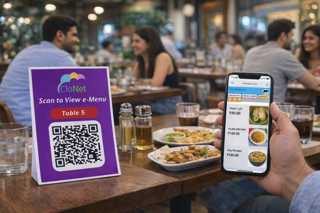 Customers scan to view the e-menu simultaneously on their own devices.