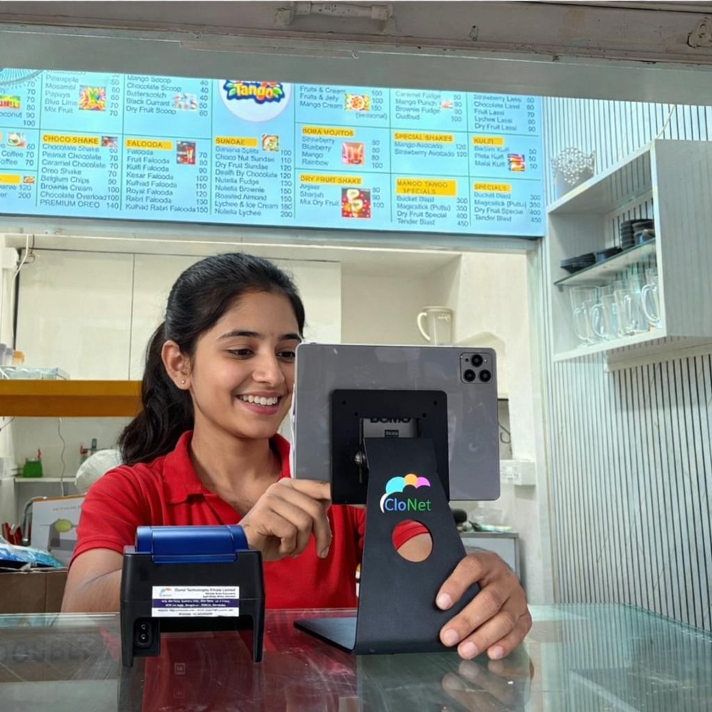 UPI payments generate a dynamic QR that customers can scan using any UPI app, with instant confirmation via Soundbox or direct phone credit.